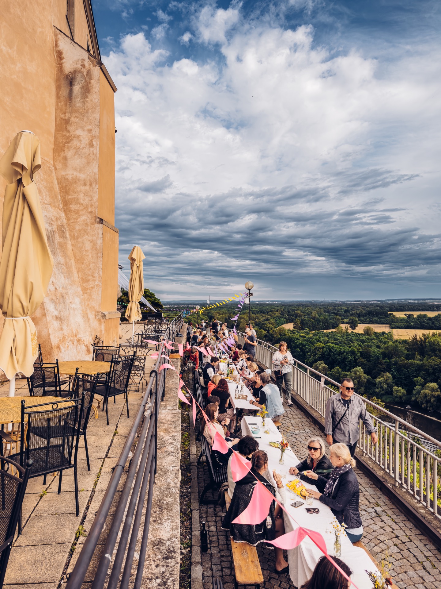 Večerní událost byla zahájena v 18 hodin, kdy se nad soutokem Labe a Vltavy prostřely dlouhé stoly zdobené květinami. Na stolech se objevila pestrá škála jídla a pití. Každý účastník měl možnost přinést své vlastní pokrmy a podělit se o ně se sousedy, což vytvořilo opravdovou atmosféru sdílení a komunity. Jako vždy jsme kladli velký důraz na podporu místních producentů a udržitelnost. Akce byla doprovázena živou hudbou místních hudebních těles a pouličních umělců, kteří zpříjemňovali večer svým vystoupením. Celý večer byl plný přátelských rozhovorů, smíchu a nových seznámení. Umístění akce nad soutokem Labe a Vltavy umožnilo návštěvníkům vychutnat si nádherné výhledy na okolní krajinu a historické památky Mělníka. Mnozí využili příležitosti k procházce po městě, aby objevili jeho skryté krásy a historii.